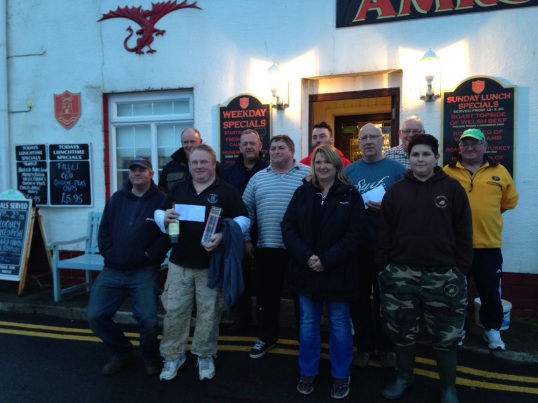 Keith Stephens (4th from right) won the pool prize with a 980 gram flounder at the Air Ambulance Open Competition held at Amroth on 10 January